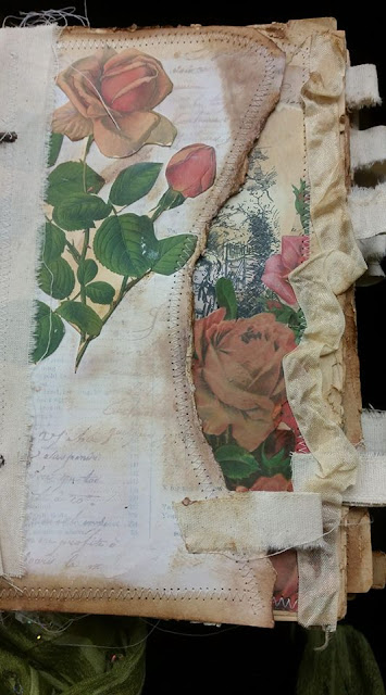 My April Tsunami Rose Designs team project using the Jane Austen Prints along with Daisy Collins' flowers. What a pleasure it was to work with. I decided this month to do a grungy style Junk Journal with glued pages and 2 inch ring binders. All pages have been sewn with her beautiful prints and colors. Tsunami Rose Designs kits are so easy to mix and match, as they complement each other with the flowers and all her ephemera. Thank you Daisy for your Creative Mind.