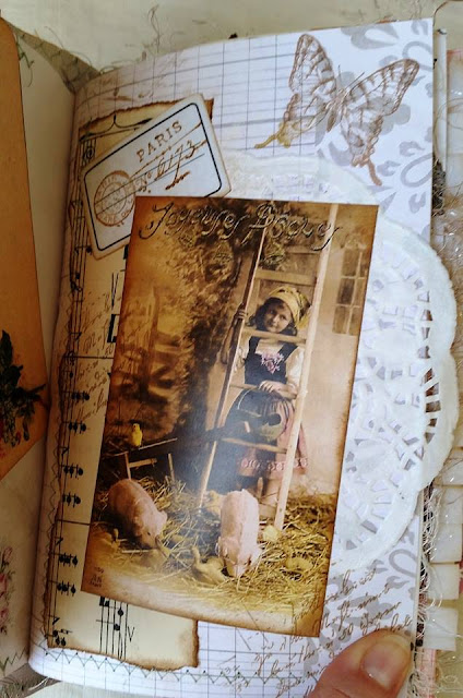 For my Tsunami Rose Designs Design Team project, I have created a 2 signature Shabby Chic Junk Journal, using the Rose Notecards digital kit, along with various other ephemera pieces ... I decided to do a few colleague pages throughout, using the ephemera, all of Daisy's kit work well and coordinate beautifully together.. As always there is a lot of sewing, and decoupaging throughout as well .. I used a 9 x 12 clasp envelope for the cover, and decoupaged some paper over the envelope,the lace/trims and book corners are from my stash. My new addiction is the Mini File Folders, these are just gorgeous, and at just $2.50 per kit you can't find better value for money, when it comes to the digital kits out there.